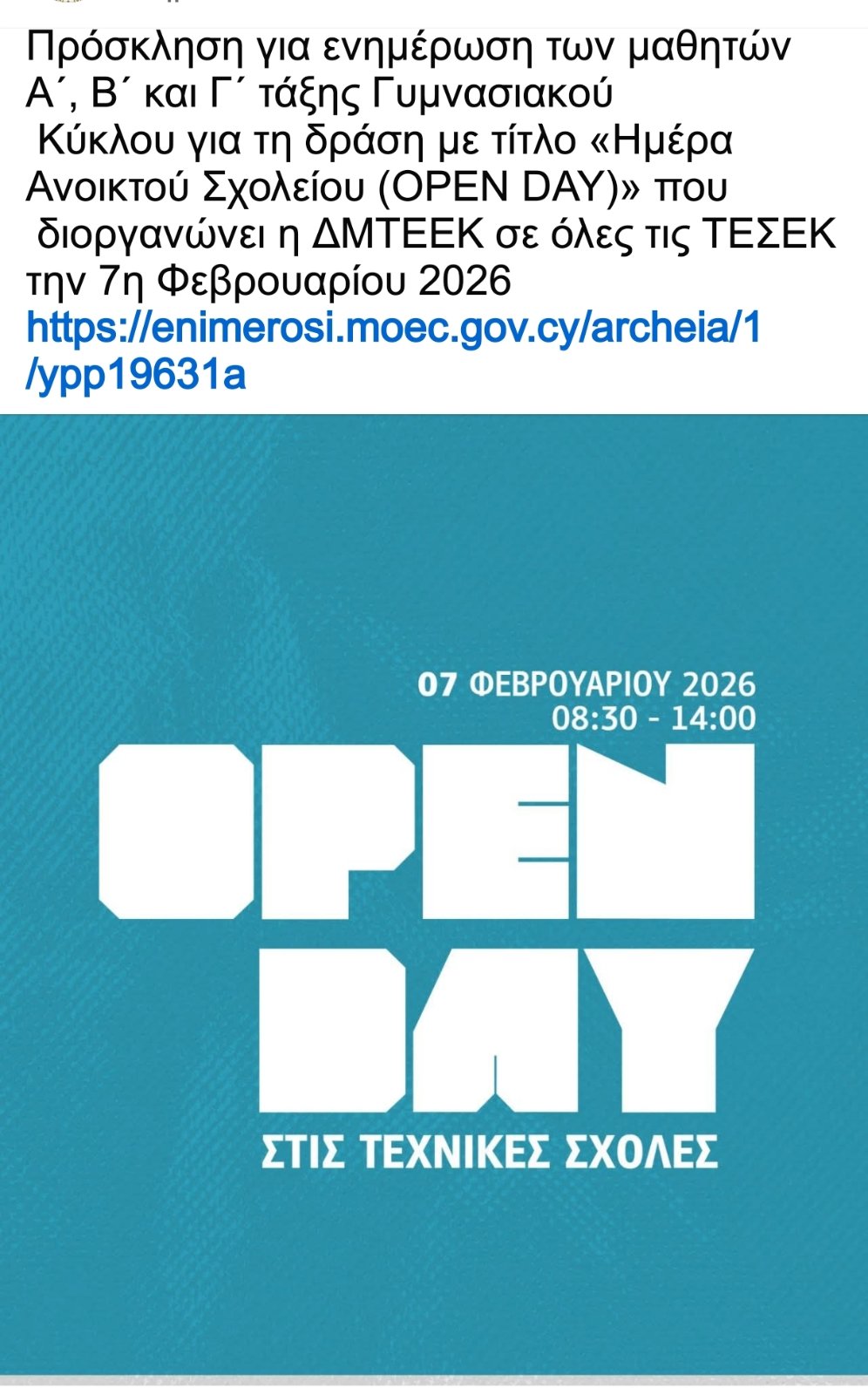 Μέρα Γνωριμίας Τεχνικών Σχολών |