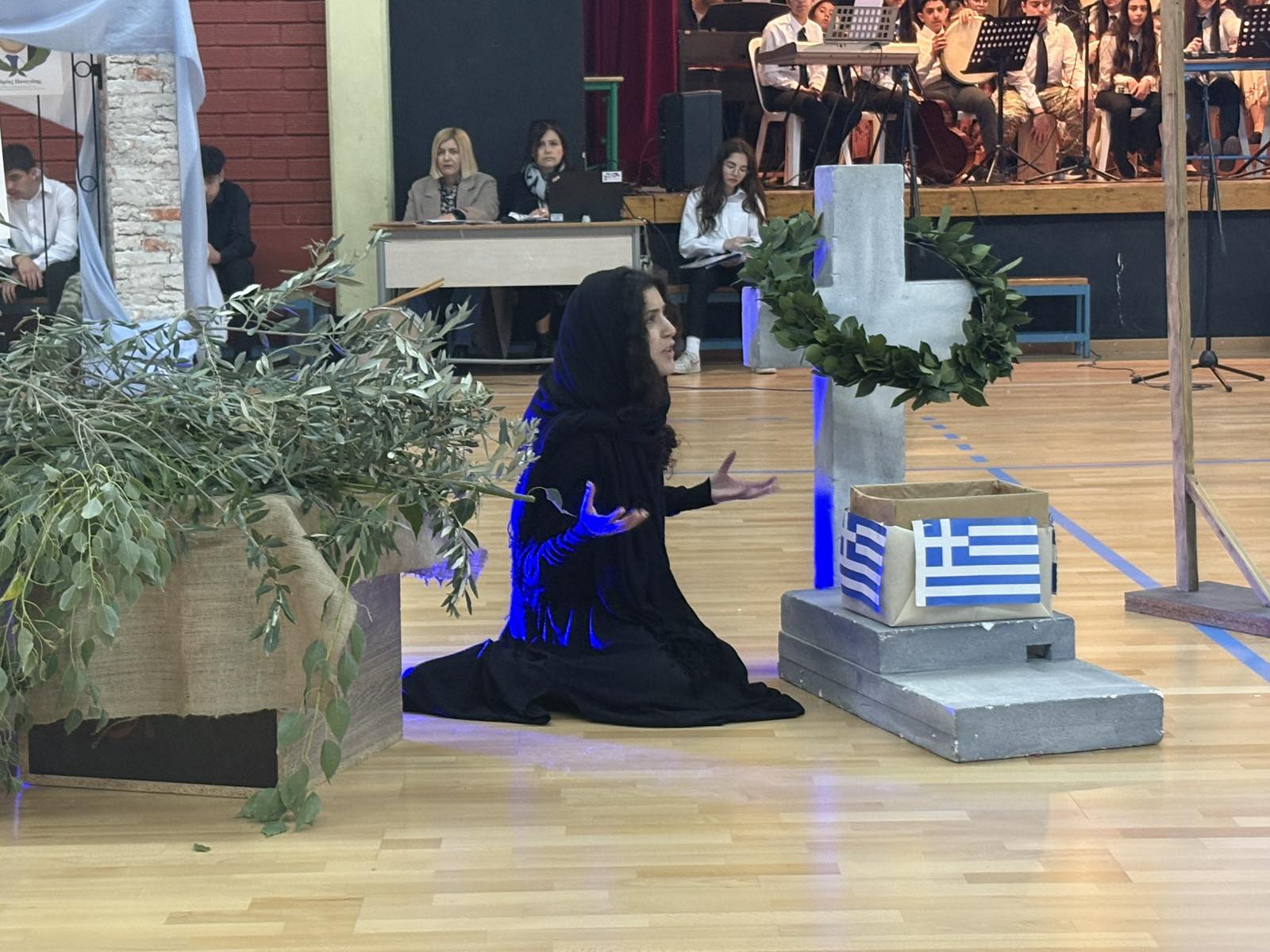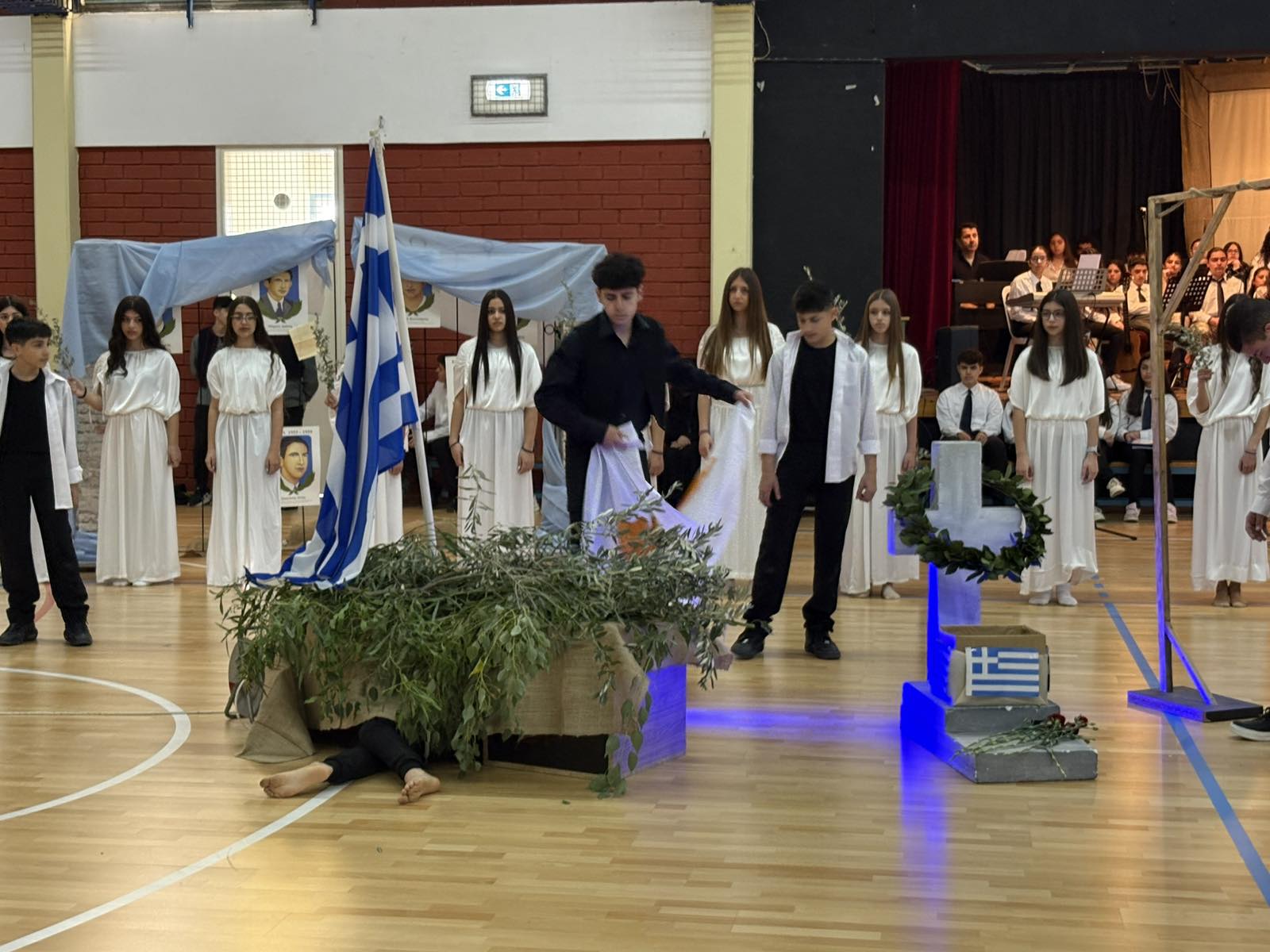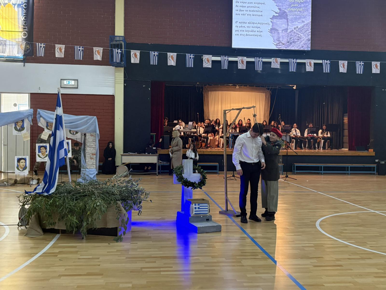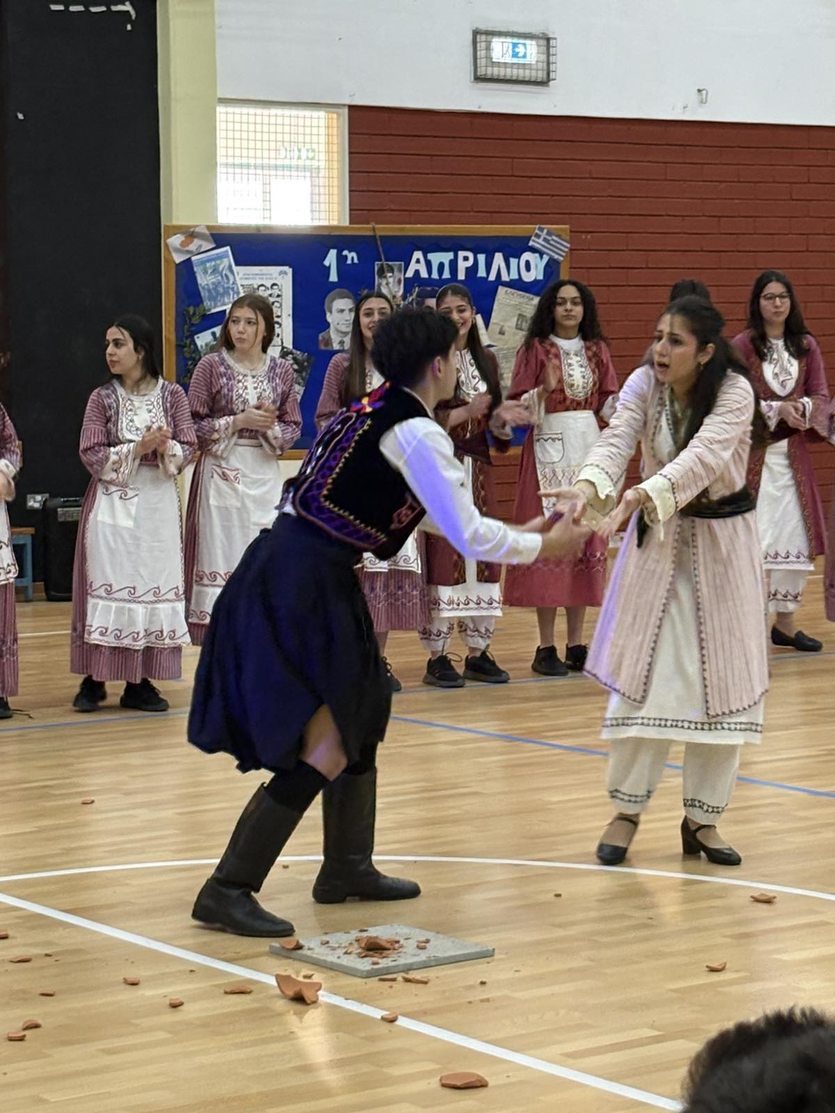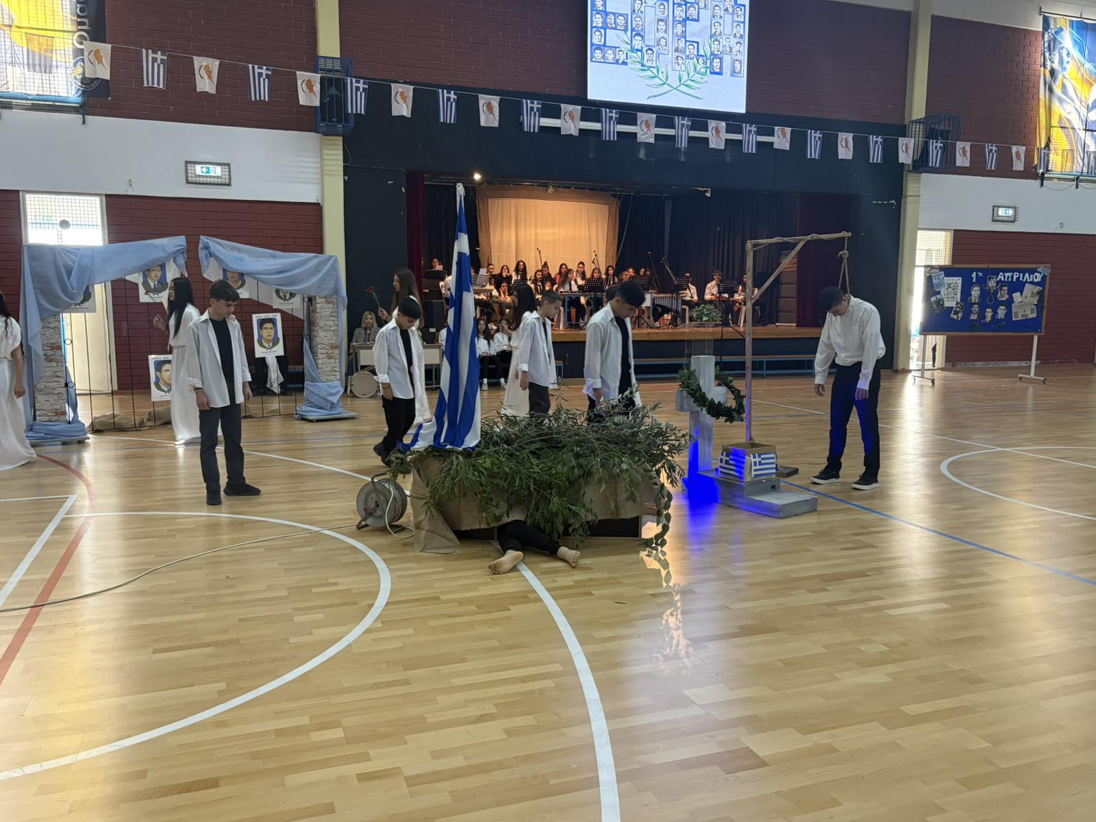 Στη συνέχεια ακολούθησαν παραδοσιακοί κυπριακοί χοροί, τραγούδια από τη χορωδία και την ορχήστρα του Σχολείου μας και δραματοποιημένη απόδοση τιμών στους ήρωες. Στο τέλος μαθητές και μαθήτριες έδωσαν όρκο, ότι θα προσπαθήσουν να φανούν αντάξιοι της θυσίας των ηρώων μας, κλίνοντας ευλαβικά το γόνυ και ευχήθηκαν σύντομα οι θυσίες των ηρώων μας για Ελευθερία να ευοδωθούν!