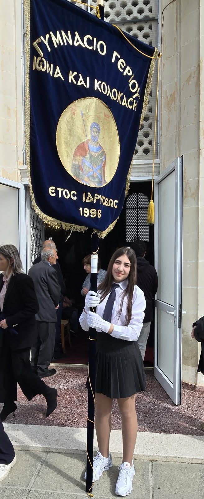 Φωτογραφικά στιγμιότυπα από από την εκπροσώπηση του Σχολείου μας στη δοξολογία της 25ης Μαρτίου που έγινε στον Ιερό Ναό Αγίου Γεωργίου στα Λατσιά. Η εκπροσώπηση έγινε από τη μαθήτρια Ηλία Σαββίνα Β6 , με τη συνοδεία της κ. Πόπης Δημητρίου.
