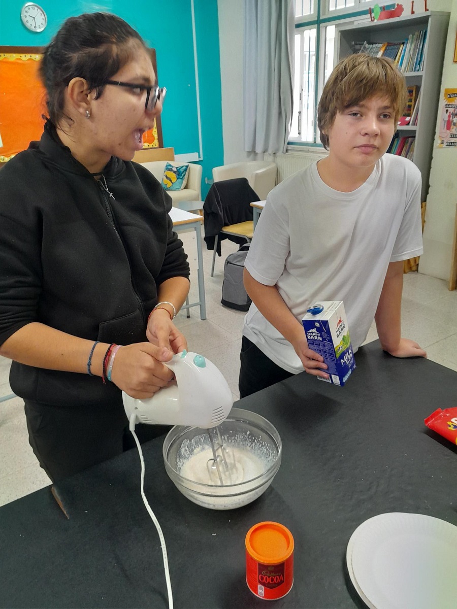 Στο πλαίσιο του προγράμματος Αγωγής Υγείας και με στόχο την ανάπτυξη δεξιοτήτων ζωής, συνεργασίας και δημιουργικότητας, οι μαθητές και μαθήτριες της Ειδικής Μονάδας συμμετείχαν με ενθουσιασμό σε εργαστήριο μαγειρικής, όπου ανέλαβαν να ετοιμάσουν λαχταριστό κορμό με μαύρη σοκολάτα.
