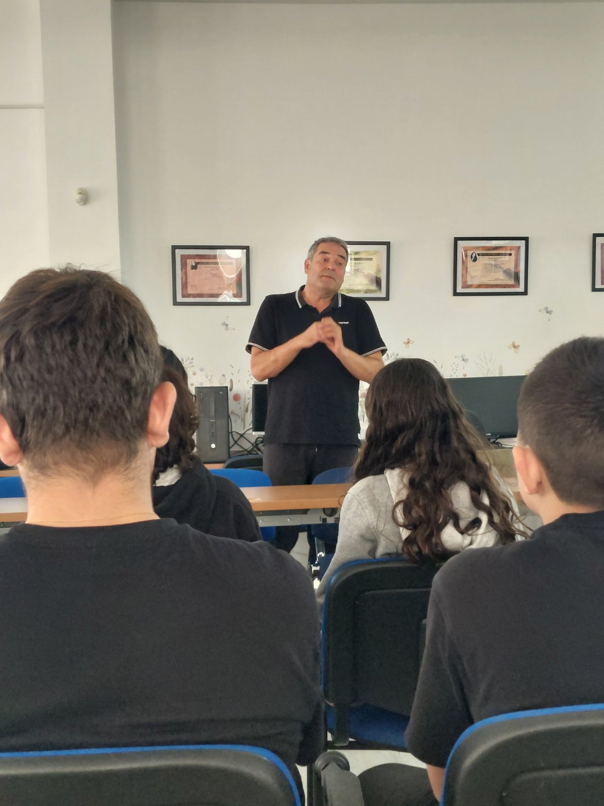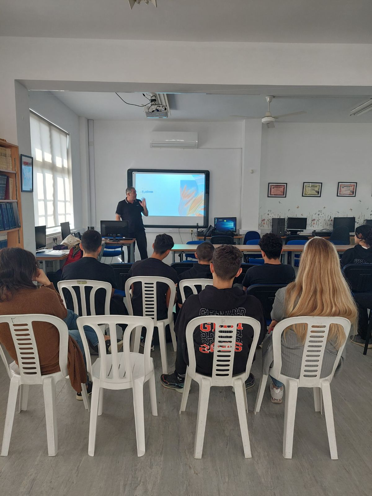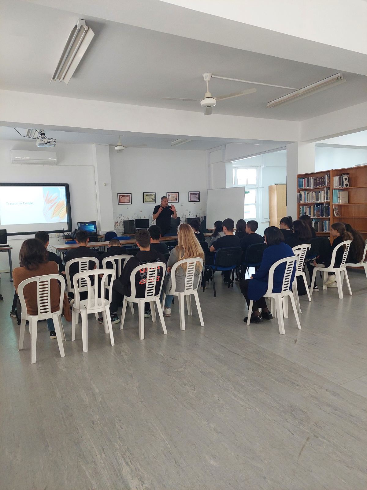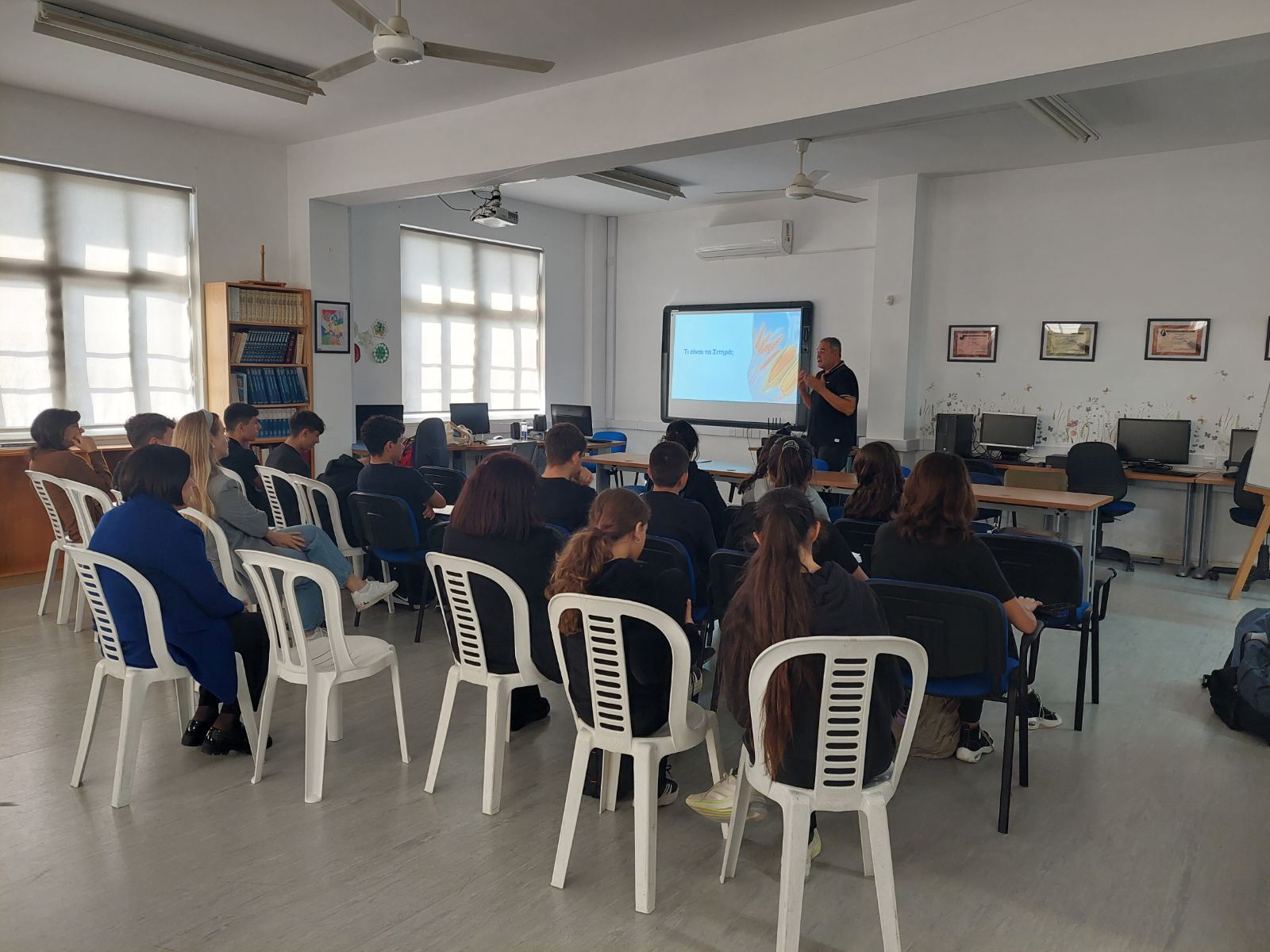 Στη διάλεξη παρευρέθηκαν και καθηγητές του σχολείου μας, οι οποίοι στήριξαν ενεργά τη δράση και συμμετείχαν στον γόνιμο διάλογο που αναπτύχθηκε.