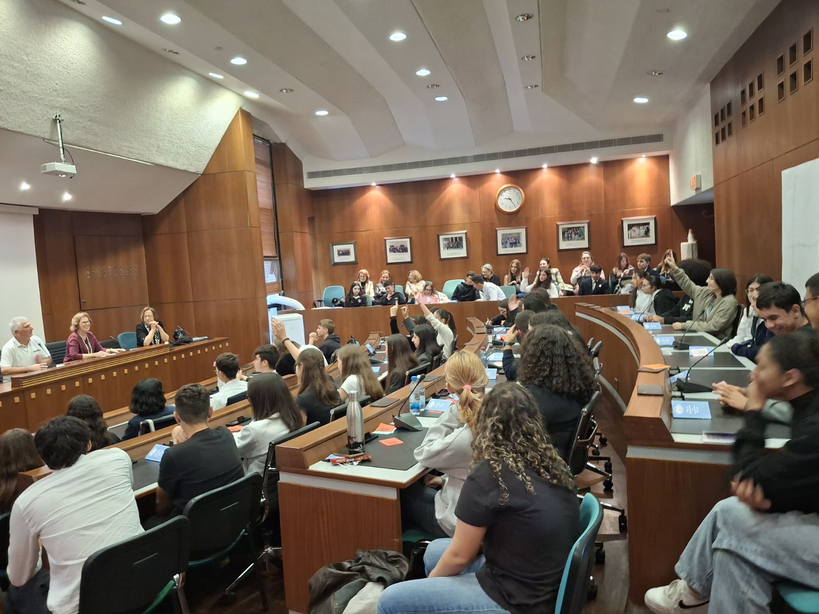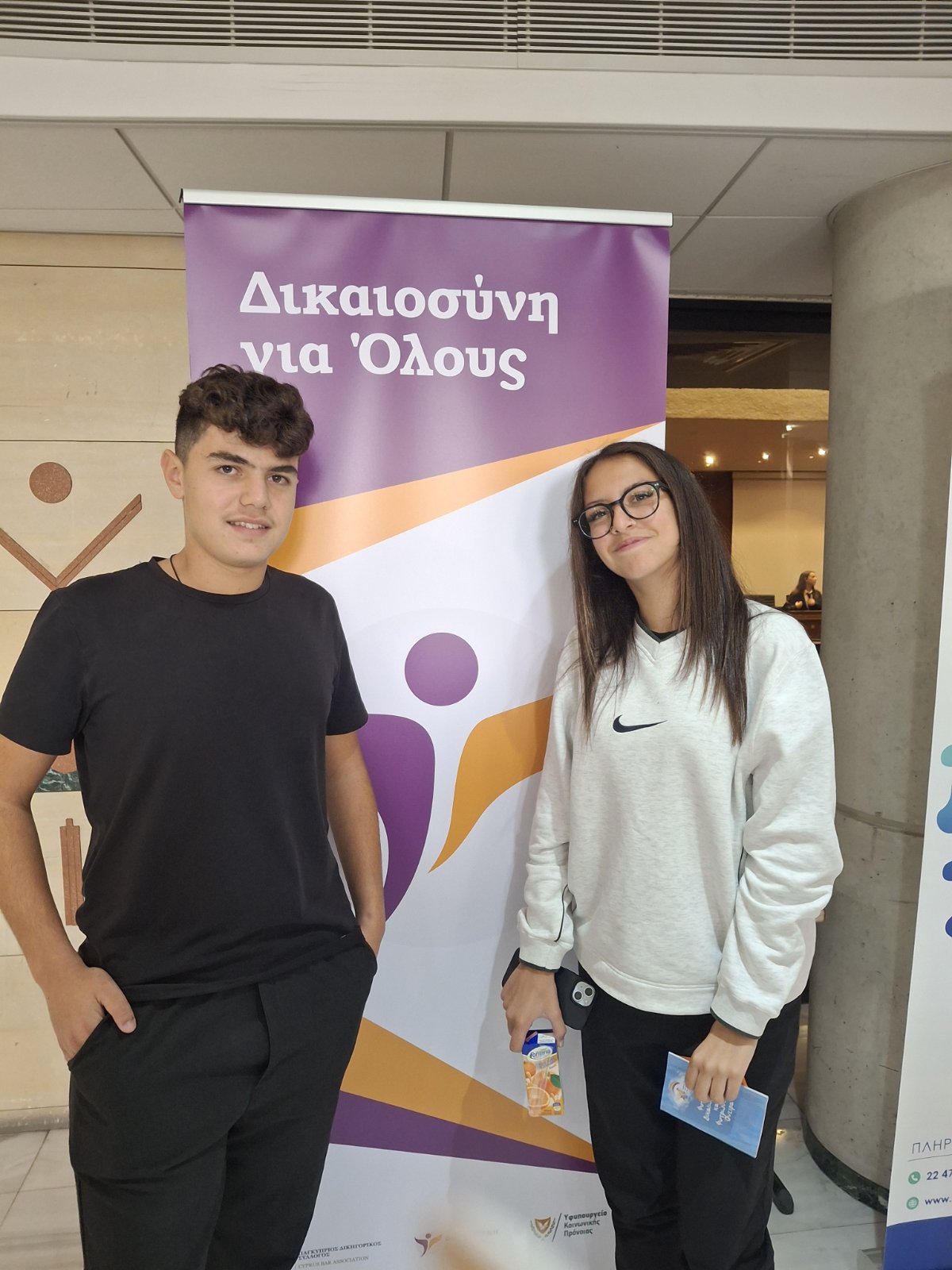 Την Παρασκευή, 21 Νοεμβρίου, οι μαθητές του Γυμνασίου Γερίου, Ευάγγελος Τσαούσογλου (Γ3) και Άννα Παπαχριστοφόρου (Γ2), συμμετείχαν στο Συνέδριο «Διάλογος Εφήβων», το οποίο πραγματοποιήθηκε στην Αίθουσα Συνεδριάσεων του Δημοτικού Συμβουλίου του Δήμου Στροβόλου, στο πλαίσιο της Εβδομάδας του Παιδιού και των εκδηλώσεων για την επέτειο της υπογραφής της Σύμβασης των Δικαιωμάτων του Παιδιού. Οι δύο μαθητές εκπροσώπησαν με ιδιαίτερη υπευθυνότητα και αξιοπρέπεια το σχολείο μας, εκφράζοντας με ζήλο και ενθουσιασμό τις απόψεις και τις ανησυχίες τους. Η συμμετοχή τους συνέβαλε ουσιαστικά σε έναν γόνιμο και εποικοδομητικό διάλογο ανάμεσα σε μαθητές από διάφορα σχολεία της επαρχίας Λευκωσίας, αναδεικνύοντας τη σημασία της ενεργού φωνής των εφήβων.