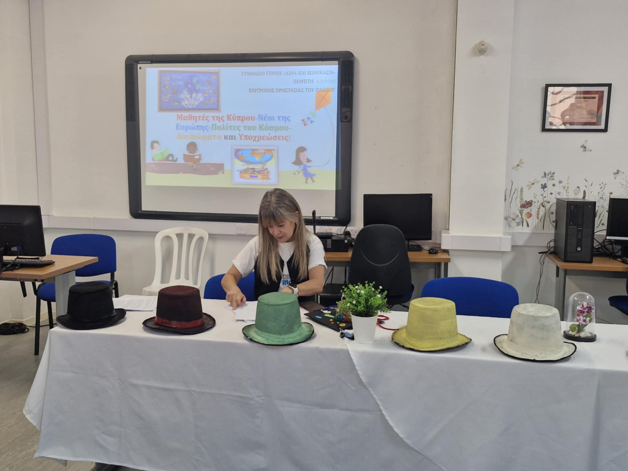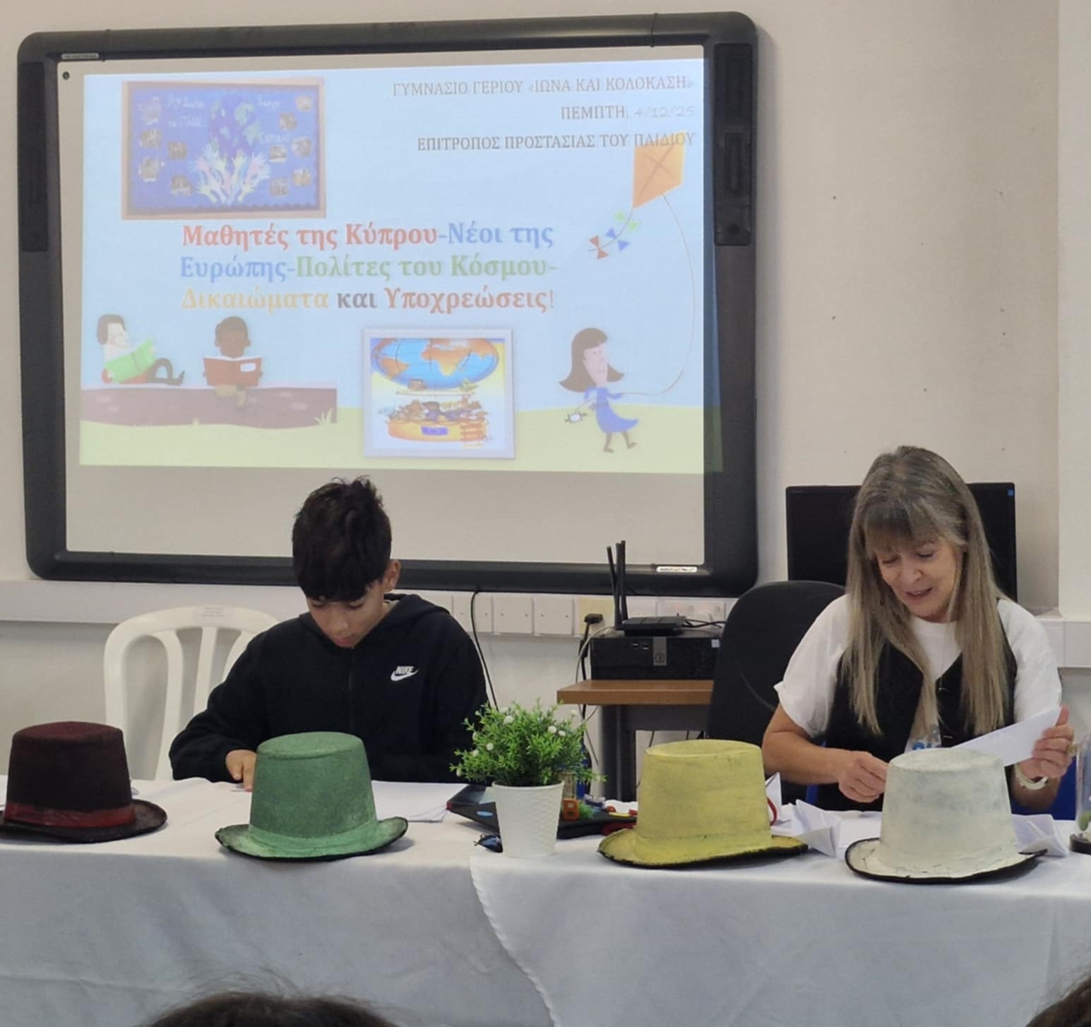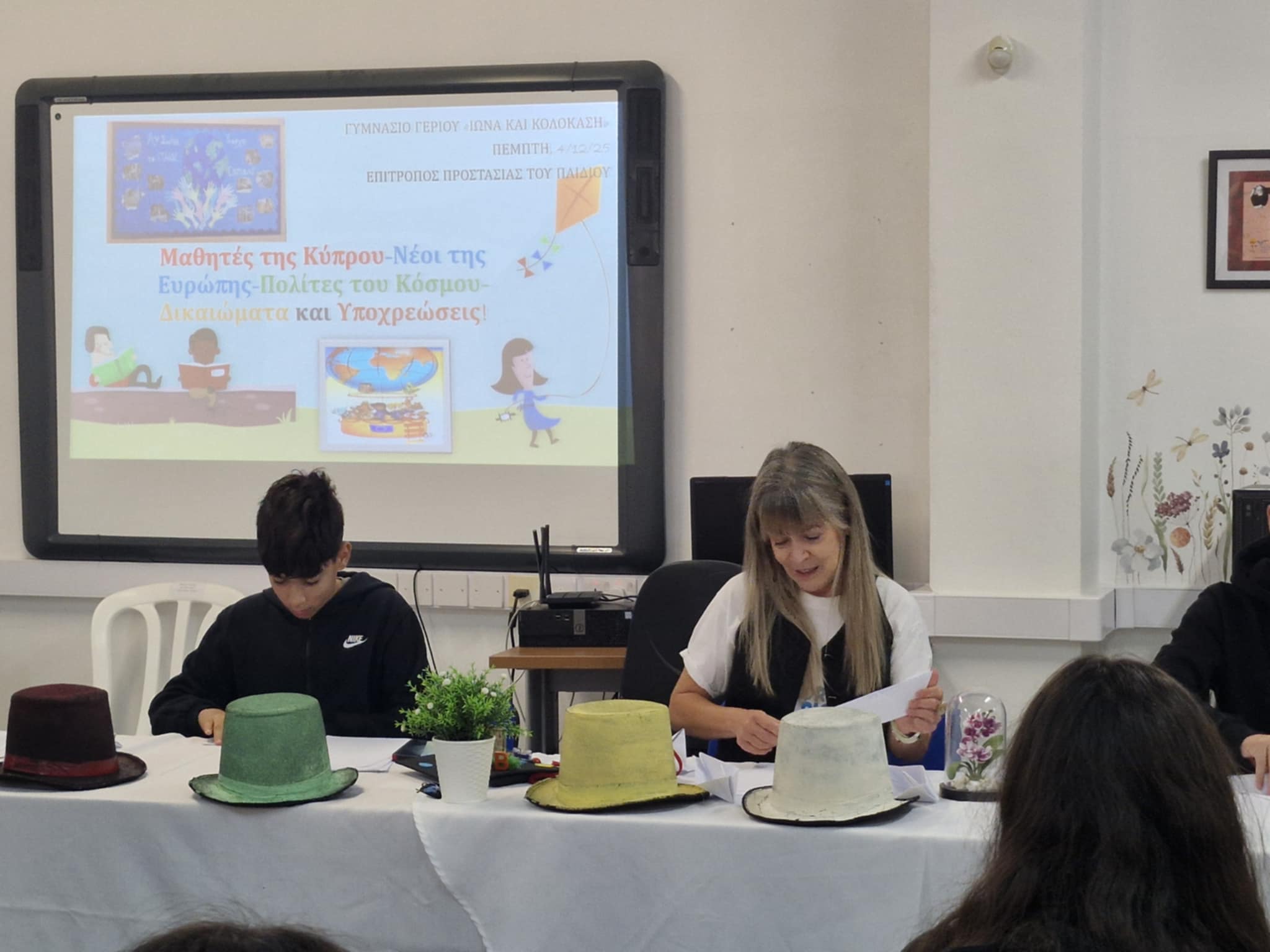 Την Πέμπτη 4 Δεκεμβρίου, είχαμε τη χαρά να φιλοξενήσουμε την κ. Έλενα Περικλέους, Επίτροπο Προστασίας των Δικαιωμάτων του Παιδιού, στο πλαίσιο δράσεων της ομάδας Unesco του Σχολείου μας, με αφορμή την Παγκόμια Μέρα των Δικαιωμάτων του Παιδιού.