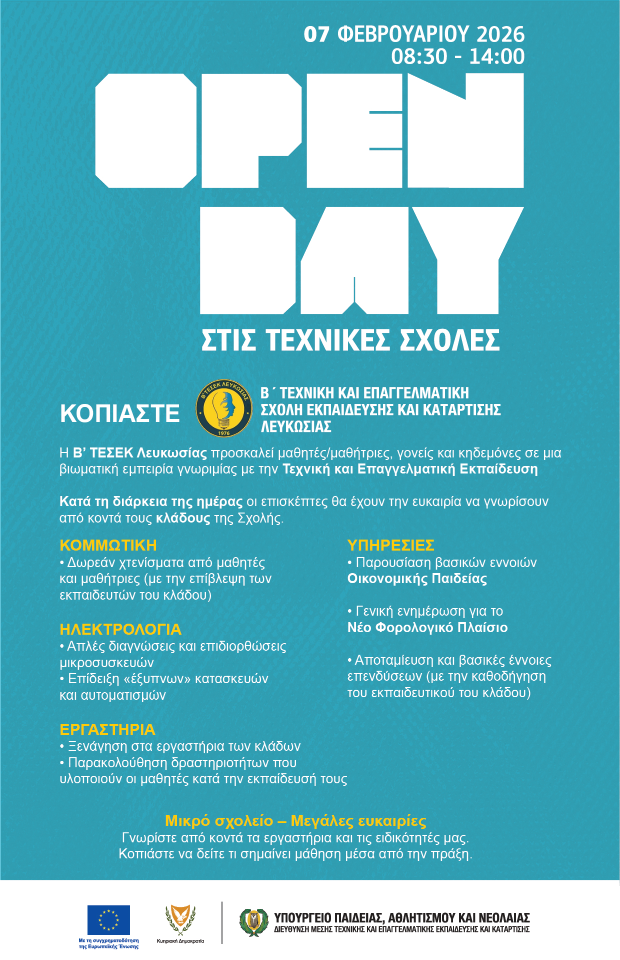 Open Day Β' Τεχνικής Σχολής 24/1/2026