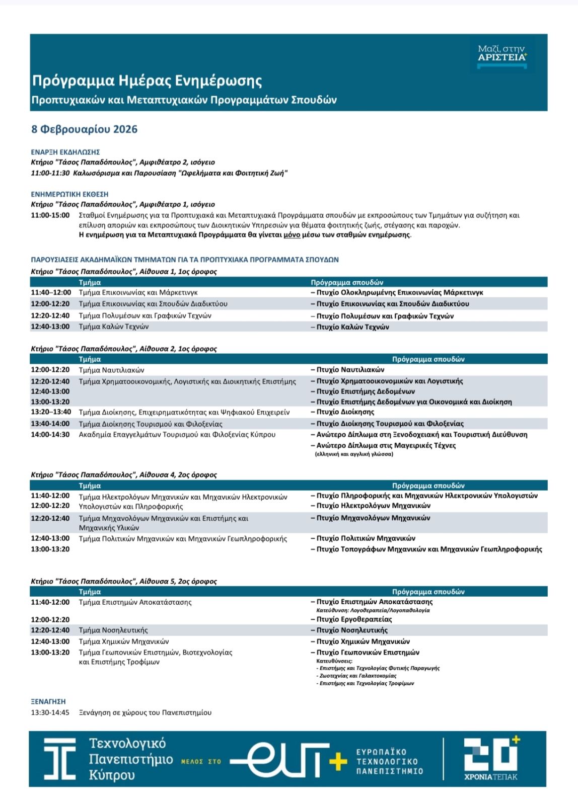 Ημέρα Γνωριμίας Πανεπιστημίου Κύπρου 24/1/2026