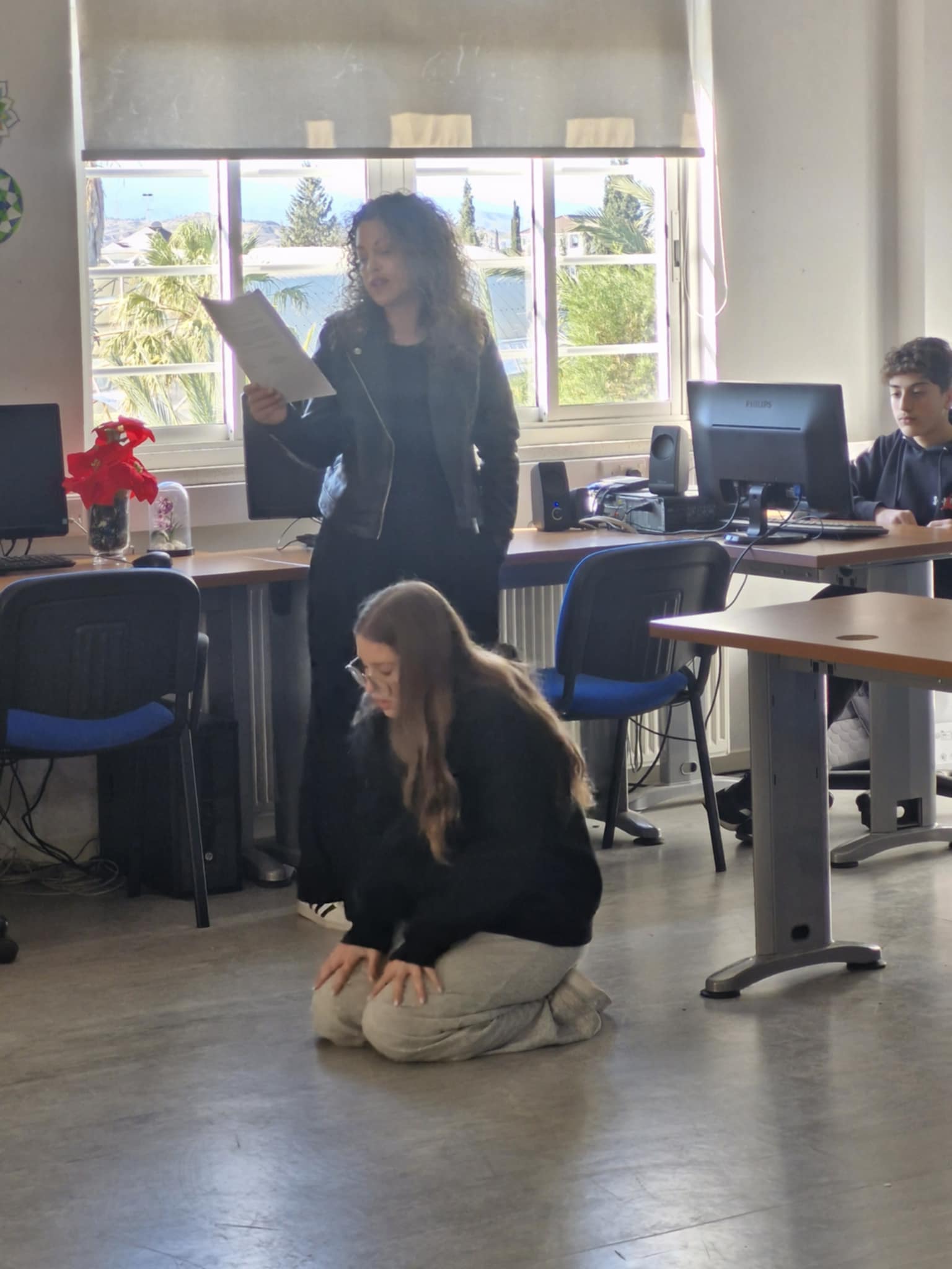 Συγκεκριμένα, παρακολούθησαν το παραμύθι του Χανς Κρίστιαν Άντερσεν « Το κοριτσάκι με τα σπίρτα», από την ηθοποιό και Αντιπρόεδρο του Συνδέσμου Γονέων και Κηδεμόνων, κ. Γαλάτεια Ζήνωνος και το παραμύθι του Λέων Τολστόι «Τα Χριστούγεννα του Μπάρμπα Πανώφ», από την κ. Άλκηστη Τράχηλου, Μαθηματικό.