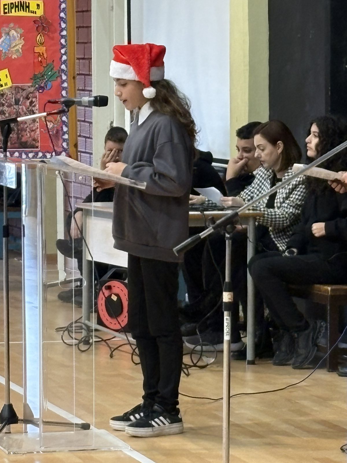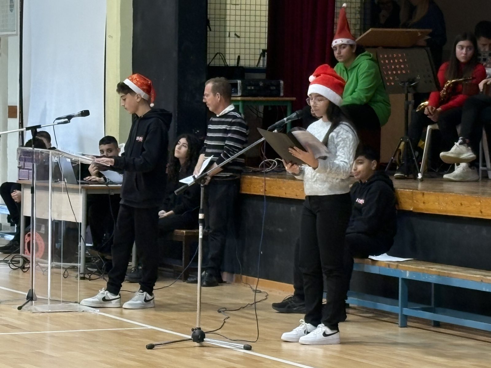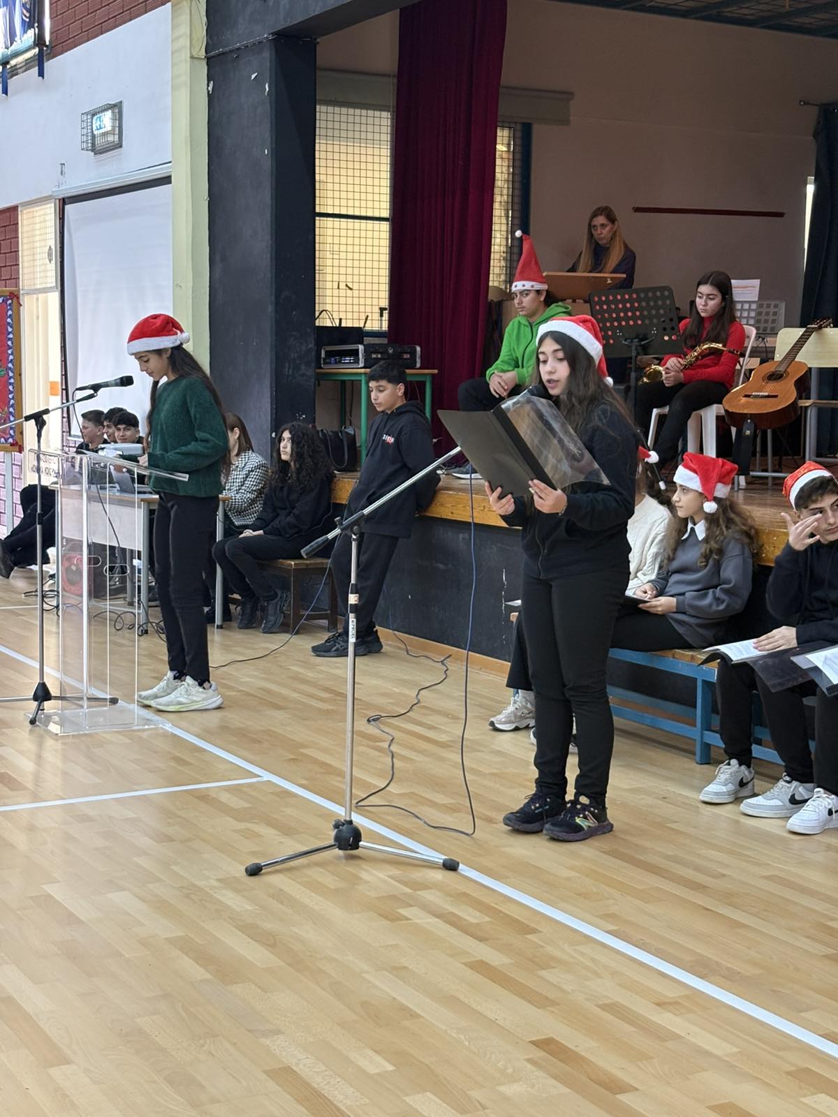 Μαθητές/τριες και καθηγητές/τριες του Σχολείου μας προετοιμάστηκαν για το χαρμόσυνο μήνυμα της ενανθρώπισης του Χριστού και αποχαιρέτησαν το 2025 με μια χαρούμενη εκδήλωση, που πραγματοποιήθηκε στις 23/12/25. Μέσα από αφηγήσεις και ποιητικές συνθέσεις έγινε μια νοερή αναπαράσταση της πορείας προς τη γέννηση και του ελπιδοφόρου μηνύματός της. Η χορωδία και η ορχήστρα μας συνεπήρε με τα τραγούδια της και οι χορευτικές φιγούρες των παιδιών μας έβαλαν σε εορταστικούς ρυθμούς .