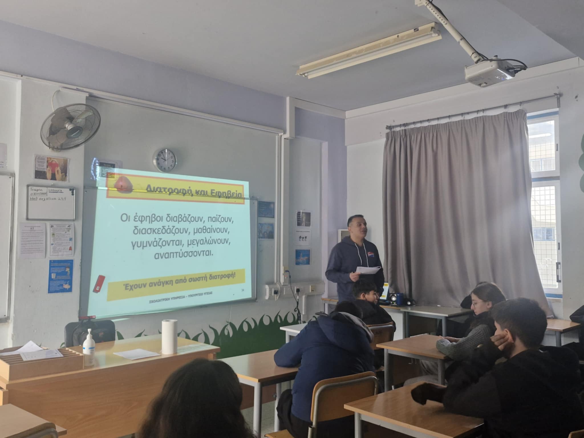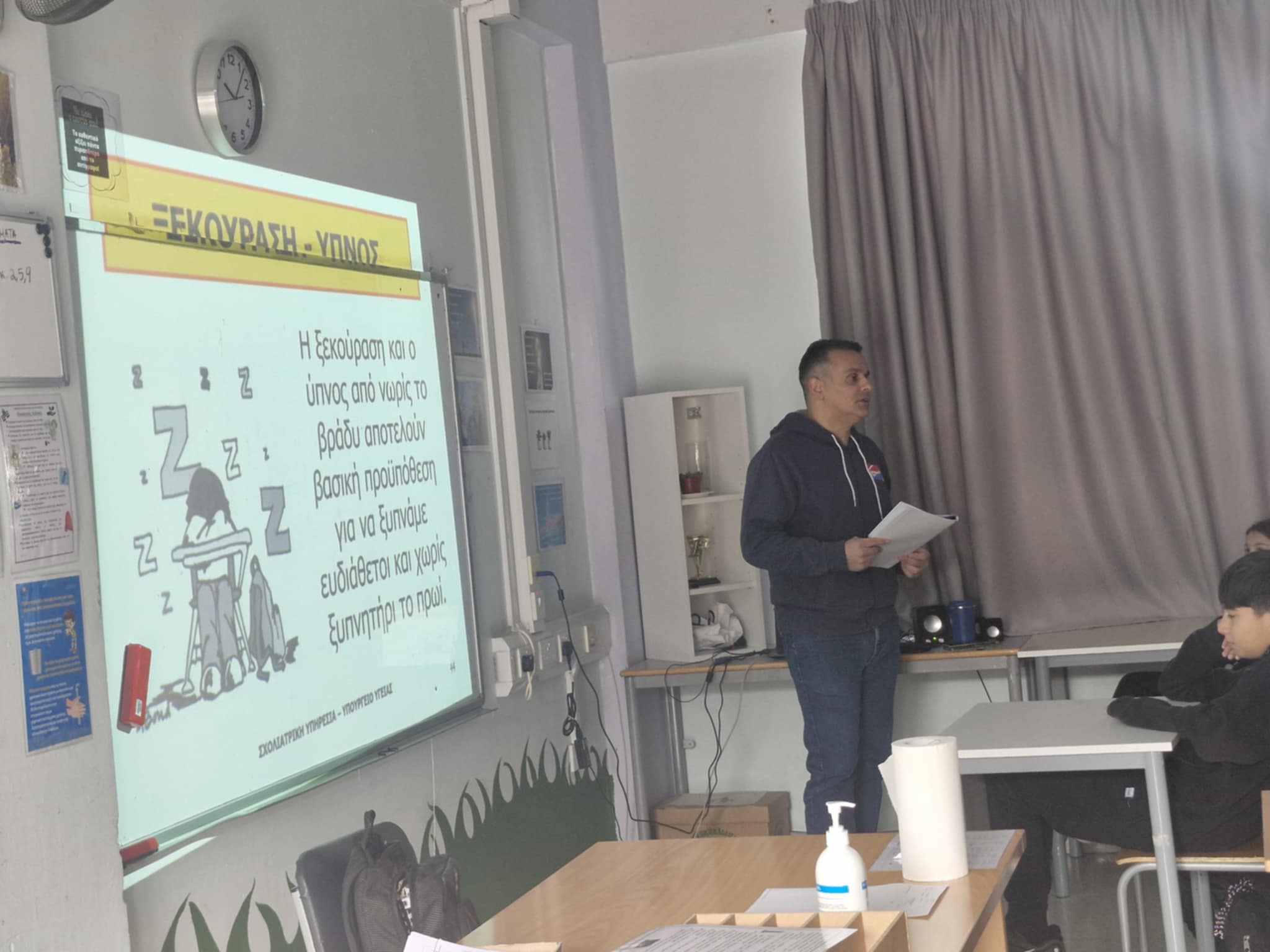 Την Τετάρτη και την Πέμπτη 7 και 8 Ιανουαρίου, οι μαθητές και μαθήτριες της Α΄ τάξης, παρακολούθησαν διάλεξη για την Εφηβεία από τον κ. Χρυσόστομο Χρυσοστόμου, ιατρικό επισκέπτη. Η διάλεξη στόχευε στη διατήρηση και προαγωγή τόσο της σωματικής όσο και της ψυχοσυναισθηματικής υγείας κατά την εφηβική ηλικία. Τα παιδιά έδειξαν μεγάλο ενδιαφέρον και προβληματίστηκαν για συνήθειες και συμπεριφορές που εφαρμόζουν.