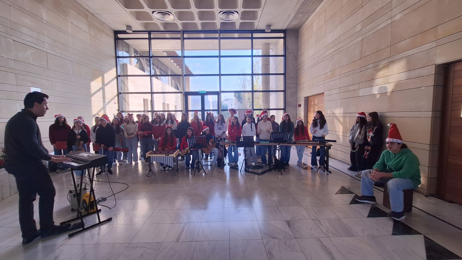 Μελωδίες και εορταστικές ευχές πλημμύρισαν τους χώρους του Δημαρχείου Λατσιών – Γερίου, του Αρχηγείου Αστυνομίας, των γραφείων της ΑΗΚ, της Στέγης Συνταξιούχων ΠΑΣΥΔΥ, του Ειδικού Σχολείου «Ευαγγελισμός» και του Φούρνου Σίφουνα, τη Δευτέρα 22 Δεκεμβρίου 2025, καθώς η Χορωδία και η Ορχήστρα του σχολείου μας πραγματοποίησαν εορταστική επίσκεψη με στόχο τη μετάδοση χριστουγεννιάτικων μηνυμάτων, χαράς και αισιοδοξίας.