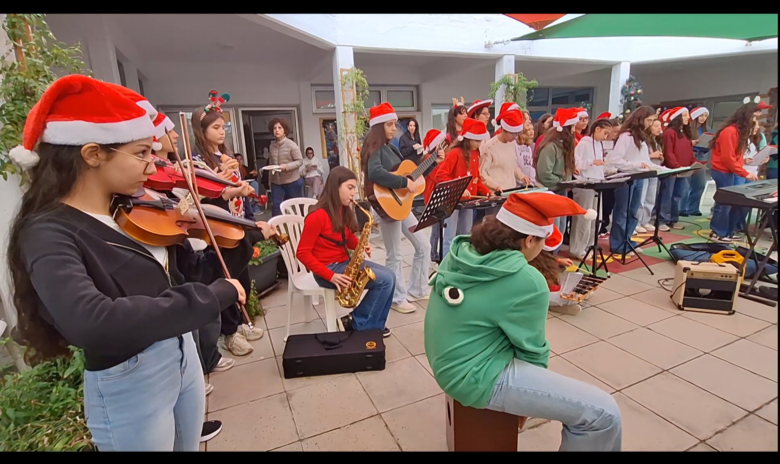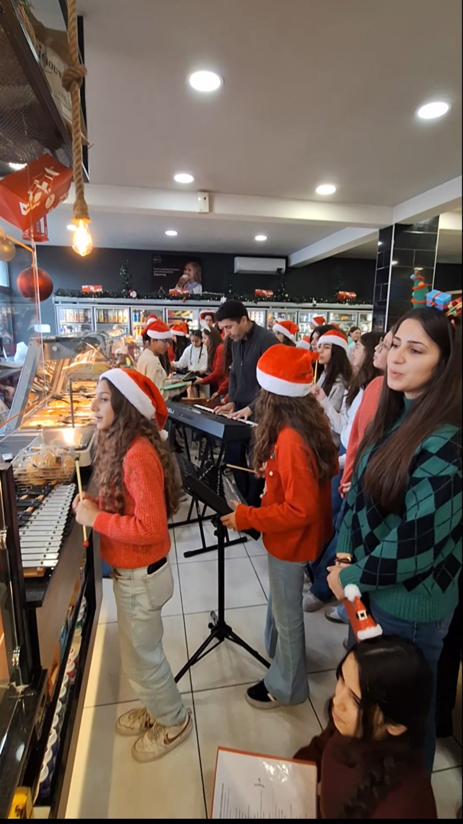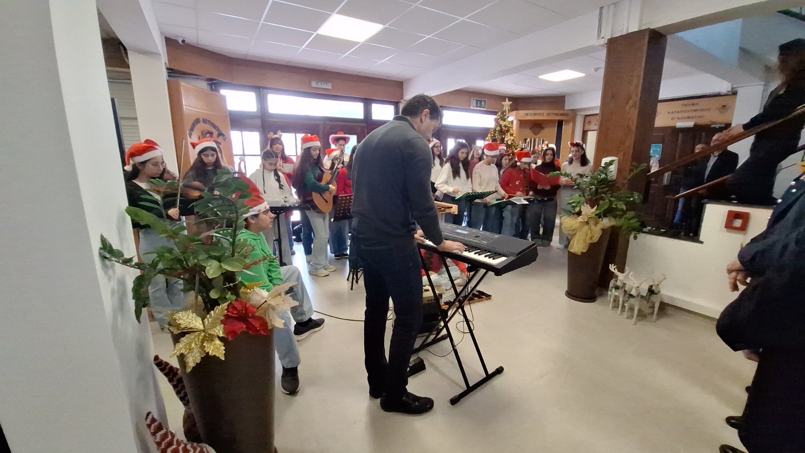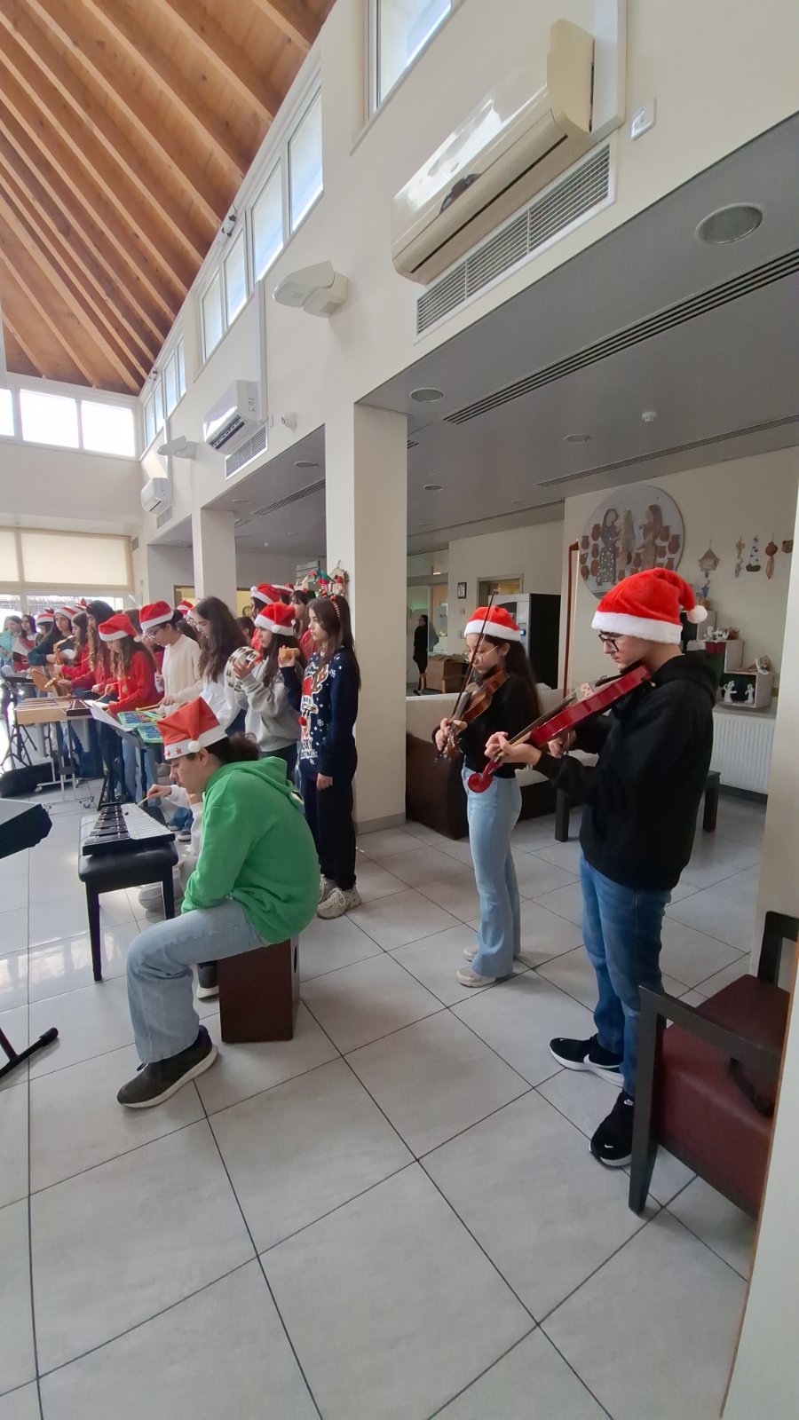 Οι μαθητές/μαθήτριές μας τραγούδησαν χριστουγεννιάτικα τραγούδια και κάλαντα, προσφέροντας συγκίνηση και χαμόγελα σε όλους όσοι παρευρέθηκαν και συμβάλλοντας στη δημιουργία μιας ζεστής και γιορτινής ατμόσφαιρας.
