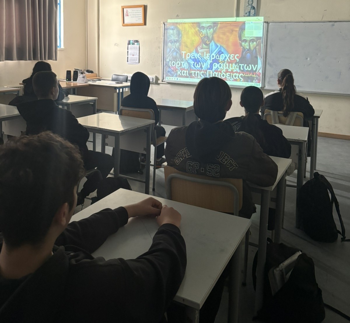 Την Πέμπτη 29 Ιανουαρίου, πραγματοποιήθηκε ενδοσχολική εκδήλωση για τον εορτασμό των Τριών Ιεραρχών και των Ελληνικών Γραμμάτων. Στην εκδήλωση παρουσιάστηκε ο βίος και το έργο των Αγίων Βασιλείου, Γρηγορίου του Θεολόγου και Ιωάννη του Χρυσοστόμου μέσα από απαγγελίες και τραγούδια.
