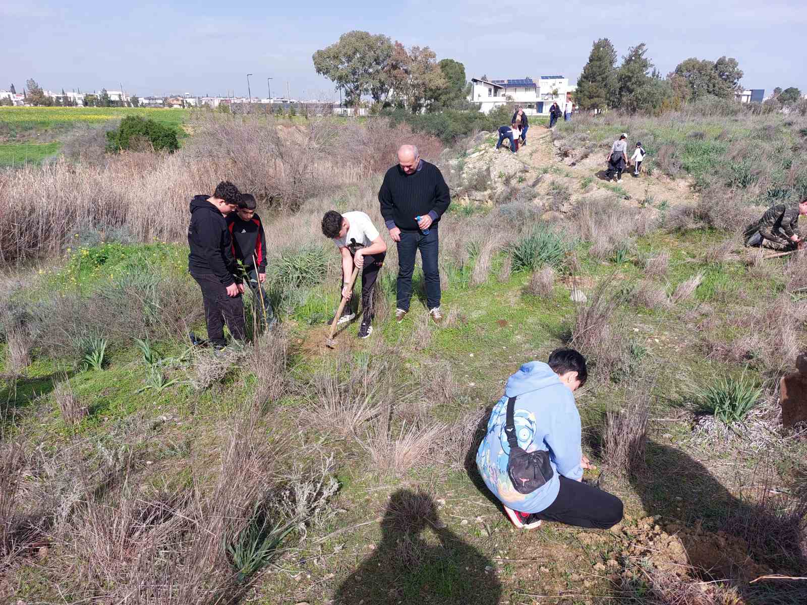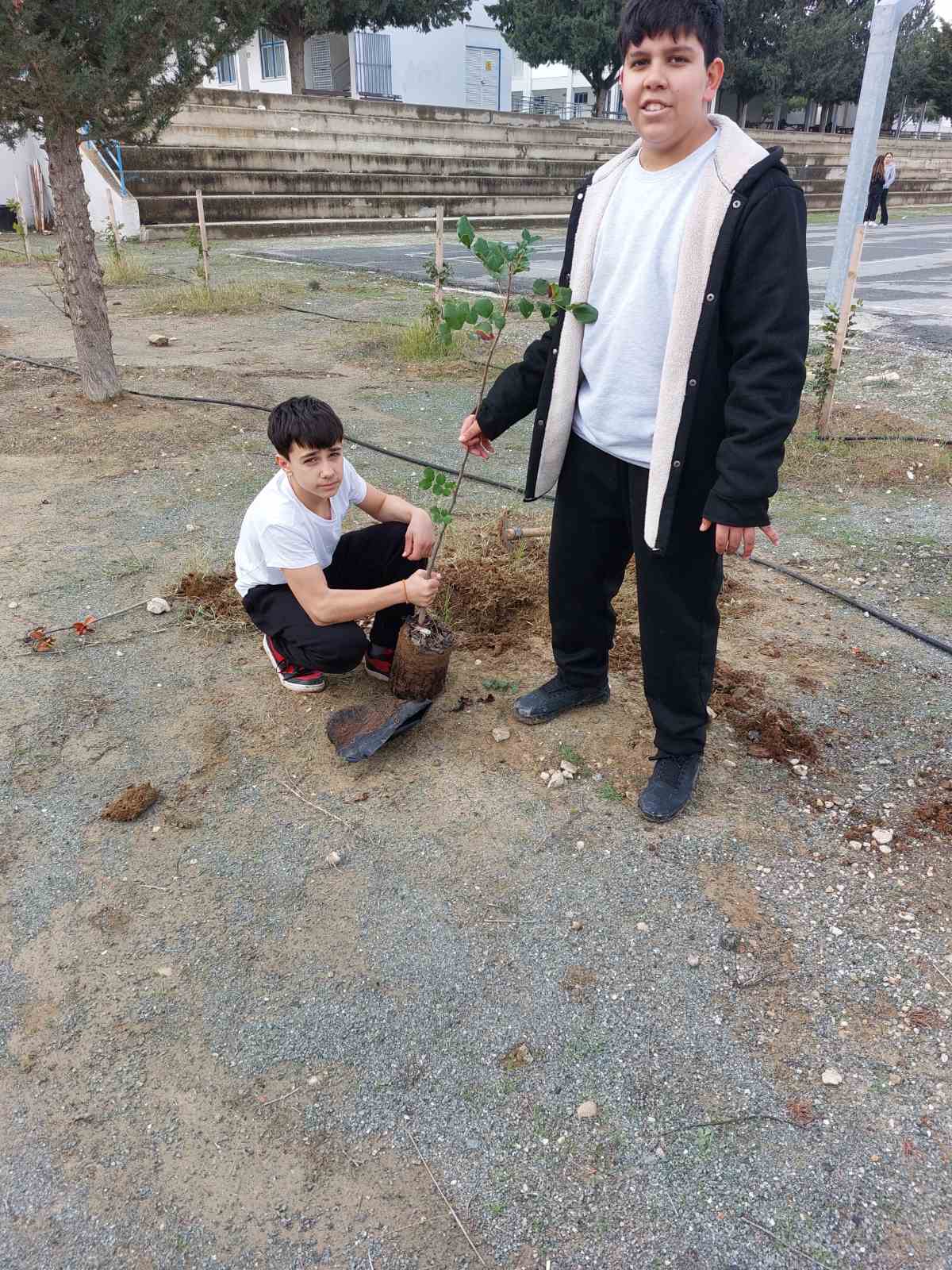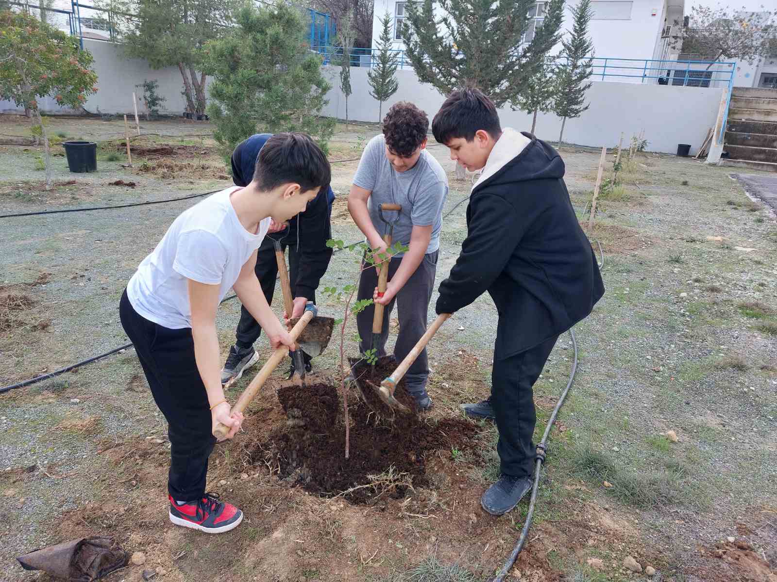Κατά την προηγούμενη εβδομάδα, στον χώρο του σχολείου πραγματοποιήθηκε δενδροφύτευση δενδρυλλίων και αρωματικών φυτών, τα οποία προμηθευτήκαμε από το Τμήμα Δασών, με τη συμμετοχή μαθητών του προγράμματος «Ευ Ζην» και των εκπαιδευτικών κ. Σοφίας Μιχαηλίδου, καθηγήτριας Βιολογίας, και κ. Γεωργίας Λαμπριανού, Βοηθού Διευθύντριας. Παράλληλα, στο πλαίσιο των καθιερωμένων εκδηλώσεων της περιόδου, μαθητές του Γυμνασίου μας προχώρησαν σε δενδροφυτεύσεις και καθαρισμό του χώρου στον Κήπο Αγνοουμένων και Πεσόντων της Κύπρου του 1974, που έχει δημιουργηθεί εντός του σχολείου μας, υπό την καθοδήγηση και επίβλεψη του καθηγητή κ. Γιάννου Φλουρή, Φιλόλογου, συνδυάζοντας την περιβαλλοντική δράση με τη μνήμη και τον σεβασμό της ιστορικής μας κληρονομιάς.