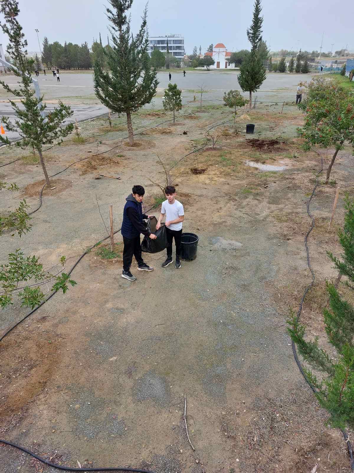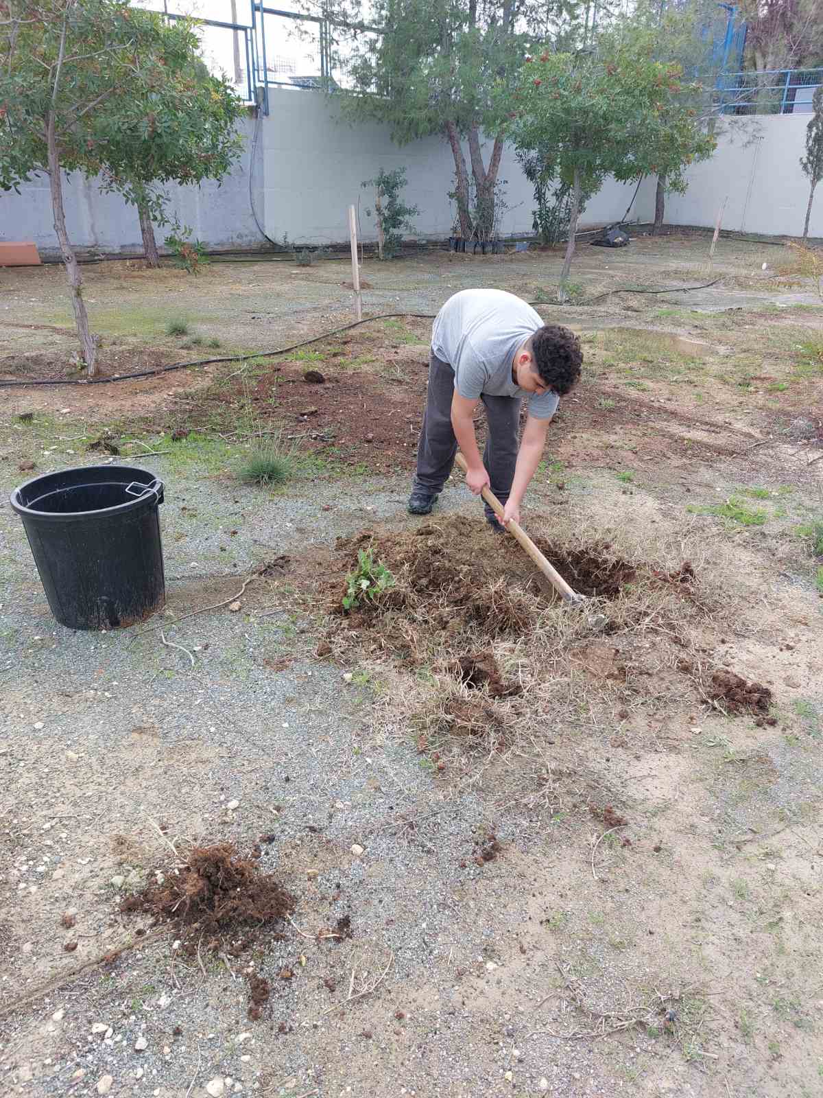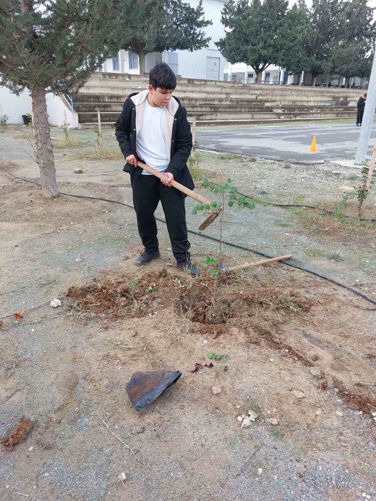 Κατά την προηγούμενη εβδομάδα, στον χώρο του σχολείου πραγματοποιήθηκε δενδροφύτευση δενδρυλλίων και αρωματικών φυτών, τα οποία προμηθευτήκαμε από το Τμήμα Δασών, με τη συμμετοχή μαθητών του προγράμματος «Ευ Ζην» και των εκπαιδευτικών κ. Σοφίας Μιχαηλίδου, καθηγήτριας Βιολογίας, και κ. Γεωργίας Λαμπριανού, Βοηθού Διευθύντριας. Παράλληλα, στο πλαίσιο των καθιερωμένων εκδηλώσεων της περιόδου, μαθητές του Γυμνασίου μας προχώρησαν σε δενδροφυτεύσεις και καθαρισμό του χώρου στον Κήπο Αγνοουμένων και Πεσόντων της Κύπρου του 1974, που έχει δημιουργηθεί εντός του σχολείου μας, υπό την καθοδήγηση και επίβλεψη του καθηγητή κ. Γιάννου Φλουρή, Φιλόλογου, συνδυάζοντας την περιβαλλοντική δράση με τη μνήμη και τον σεβασμό της ιστορικής μας κληρονομιάς.