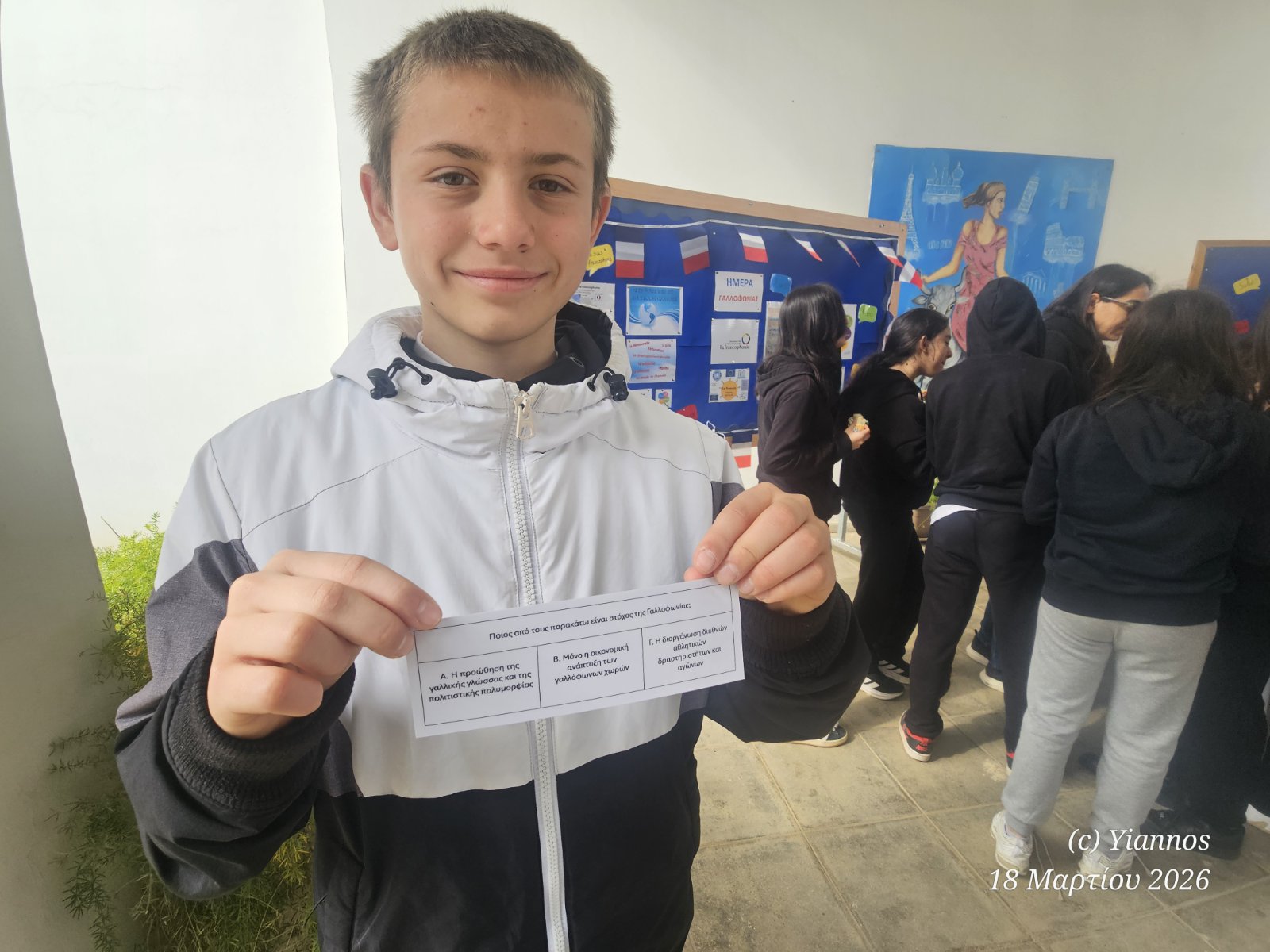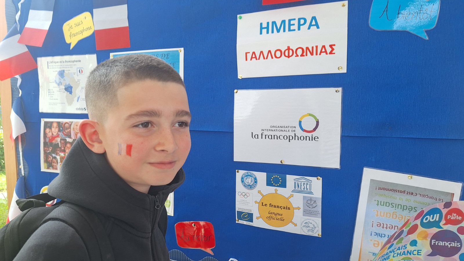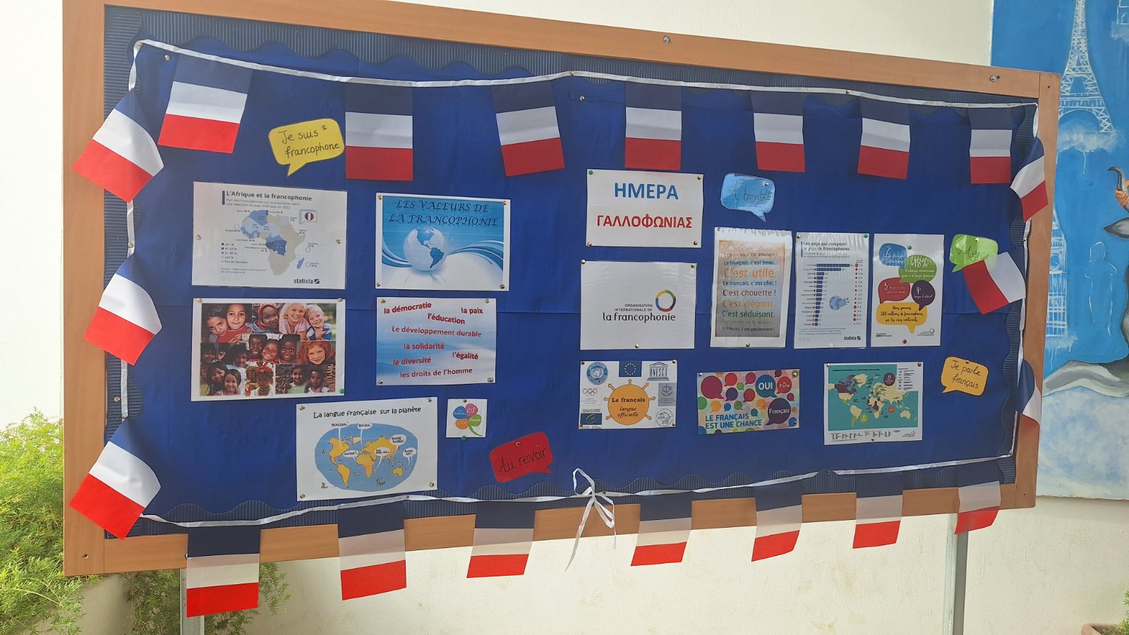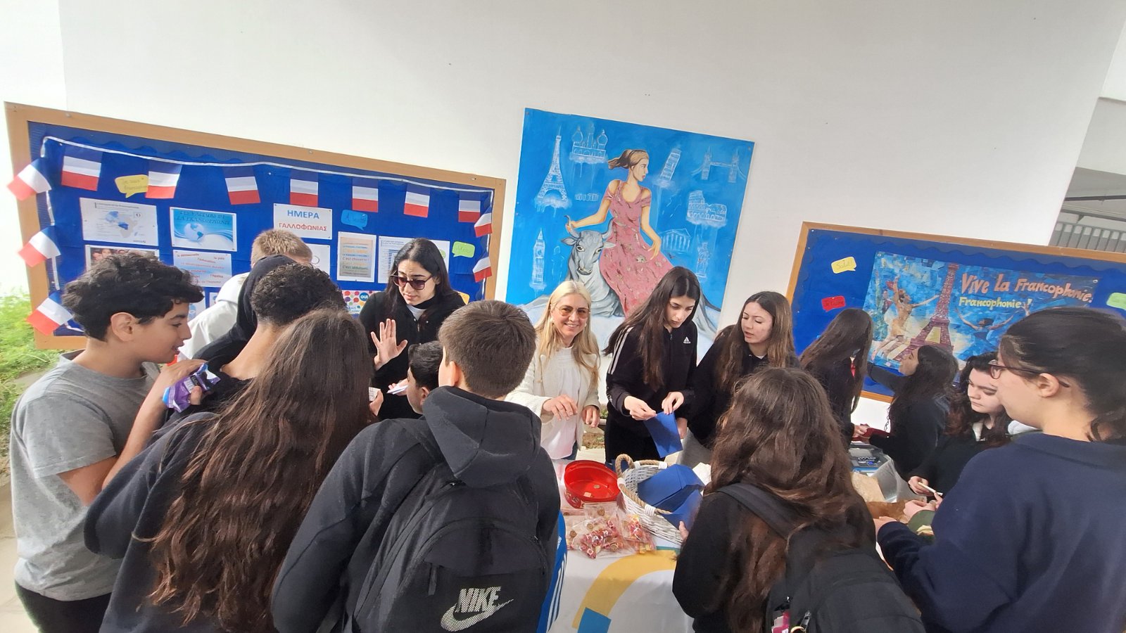 Η Παγκόσμια Ημέρα Γαλλοφωνίας (20 Μαρτίου) γιορτάστηκε φέτος στο σχολείο μας με ιδιαίτερο ενθουσιασμό και δημιουργικότητα. Πολύμορφη και συμπεριληπτική, η Γαλλοφωνία είναι μια ζωντανή και διαρκώς διευρυνόμενη κοινότητα χωρών και ανθρώπων των πέντε ηπείρων που μοιράζονται ως κοινή γλώσσα τη Γαλλική και τις αξίες που αντιπροσωπεύει. Η Γαλλική περιλαμβάνεται ανάμεσα στις κύριες γλώσσες επικοινωνίας του πλανήτη. 321 εκατομμύρια άνθρωποι την μιλούν, γεγονός που την καθιστά την 5η ομιλούμενη γλώσσα στον κόσμο. Οι καθηγήτριες των Γαλλικών και μαθητές συνεργάστηκαν για να αναδείξουν τη γαλλική γλώσσα και τον πολιτισμό μεσα απο διάφορες δραστηριότητες. Ετοιμάστηκαν δύο πινακίδες και διαβάστηκε φυλλάδιο στην τάξη. Κατά τη διάρκεια των δύο διαλειμμάτων ακούστηκαν γαλλικά τραγούδια και οι μαθητές συμμετείχαν σε διαγωνισμό γνώσεων με κουίζ με δωράκια σχετικά με τη Γαλλία, όπως μπρελόκ με τον πύργο του Άιφελ. Ιδιαιτερο ενδιαφέρον είχε και η πώληση γαλλικών εδεσμάτων όπως κρουασάν, όπου οι μαθητές είχαν την ευκαιρία να γνωρίσουν καλύτερα τη γαστρονομία της χώρας και τα έσοδα δοθηκαν στην Πρόνοια του σχολείου. Η Ημέρα Γαλλοφωνίας αποτέλεσε μια ξεχωριστή εμπειρία που μας έφερε πιο κοντά στο γαλλικό πολιτισμό και μας ενέπνευσε να συνεχίσουμε να μαθαίνουμε.