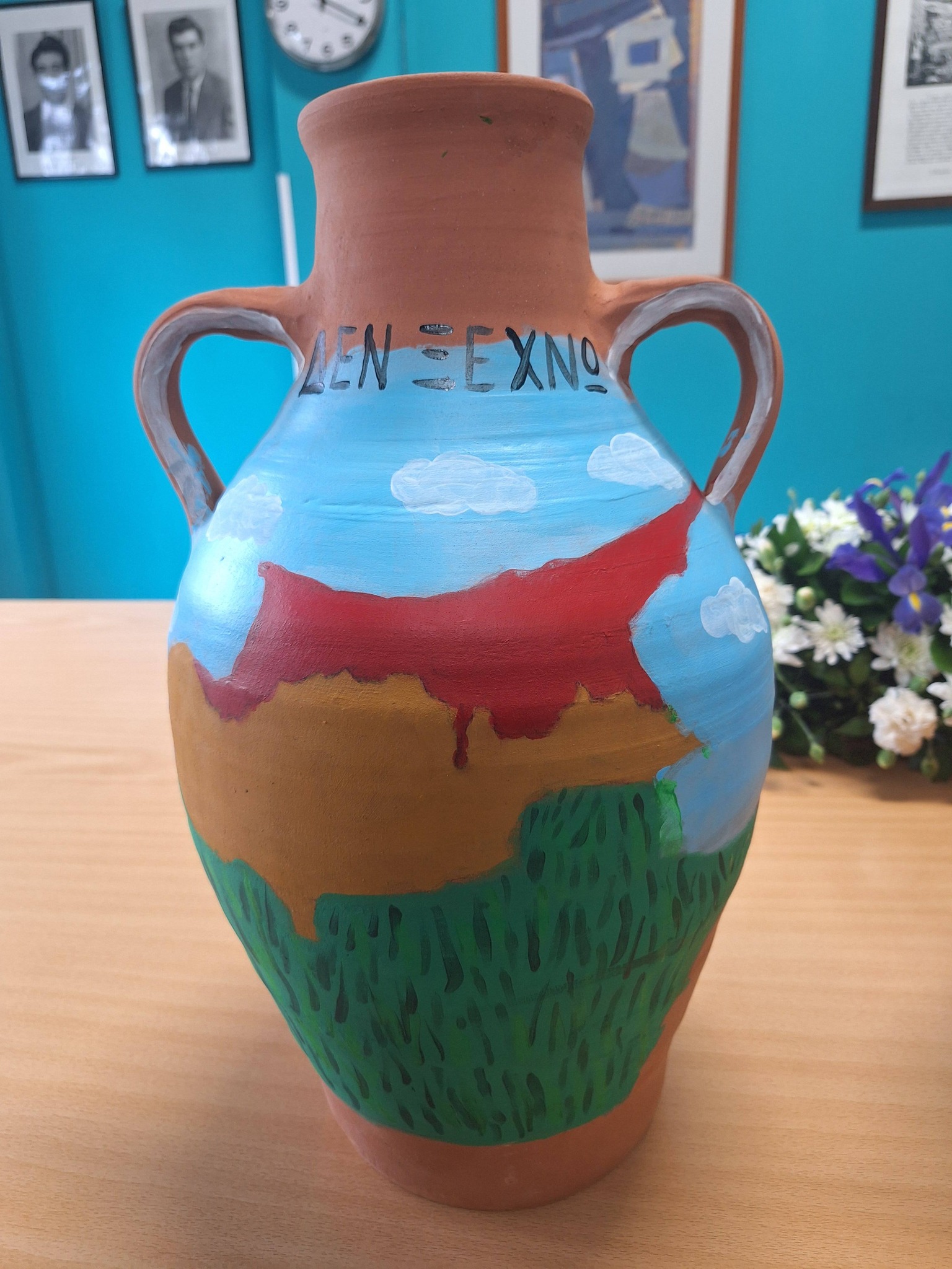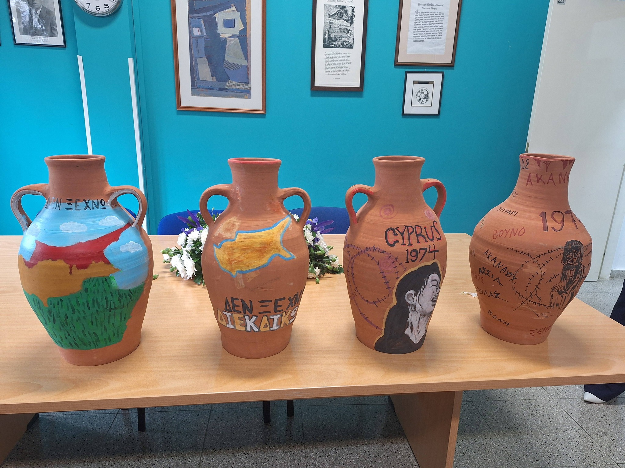 Το Σχολείο μας συνέβαλε και φέτος στην καθιερωμένη πια δράση των Ακριτών Γερίου, η οποία θα πραγματοποιηθεί το Μεγάλο Σάββατο, με τίτλο «Λευτεριά στην Κύπρο μας», με τη φιλοτέχνηση τεσσάρων κυπριακών κούζων.