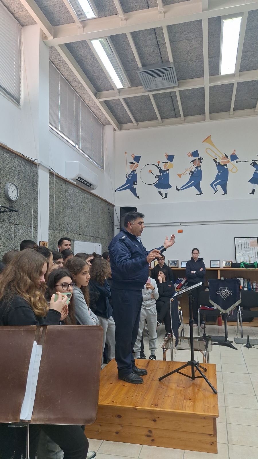 Την Παρασκευή 3 Απριλίου η Χορωδία και Ορχήστρα του σχολείου μας πραγματοποίησε εκπαιδευτική επίσκεψη στη Φιλαρμονική της Αστυνομίας Κύπρου. Ο μαέστρος και μέλη της Ορχήστρας έκαναν παρουσίαση της ιστορίας και του έργου της Φιλαρμονικής από το 1900, μια μικρή συναυλία με διαφορετικά είδη μουσικής απο το κυπριακό, ελληνικό και ξένο ρεπερτόριο, καθώς και παρουσίαση των μουσικών οργάνων. Είδαν και άκουσαν από κοντά την χροιά του κάθε οργάνου και έμαθαν για το ρόλο τους μέσα στο σύνολο, πώς λειτουργεί μια Φιλαρμονική Ορχήστρα από τις πρόβες μέχρι την παράσταση και γνώρισαν από κοντά ένα επαγελματικό μουσικό οργανισμό με σημαντική παρουσία στην πολιτιστική ζωή της Κύπρου. Μετά τη συναυλία τους έγινε ξενάγηση στο Μουσείο, όπου είδαν ότι η Φιλαρμονική είναι παρούσα σε κάθε εθνική, κοινωνική και φιλανθρωπική εκδήλωση του τόπου μας, αποδεικνύοντας ότι αποτελεί τη γέφυρα και σύσφιξη των άριστων σχέσεων μεταξύ πολιτών και Αστυνομίας. Η εμπειρία αυτή ήταν μία ευχάριστη εκπαιδευτική δραστηριότητα για τους μαθητές που συνέβαλε στην έμπνευση από επαγγελματίες μουσικούς και ενίσχυση του ενδιαφέροντος τους για τη μουσική.